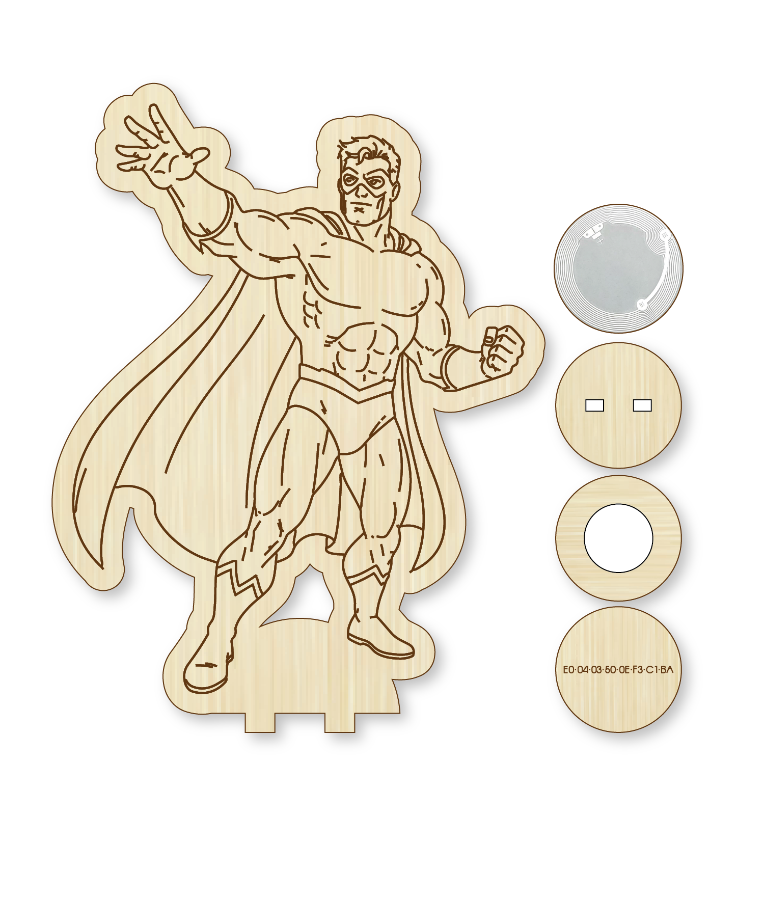 Wham, BAM, BOOM! Shake things up with this superhero custom Woodie. With a blank chest waiting for your customization this hero can be anyone! Woodies require disassembly of your music box, and music loaded directly onto its internal SD card. To learn how to do this, click "get started" in the menu bar.