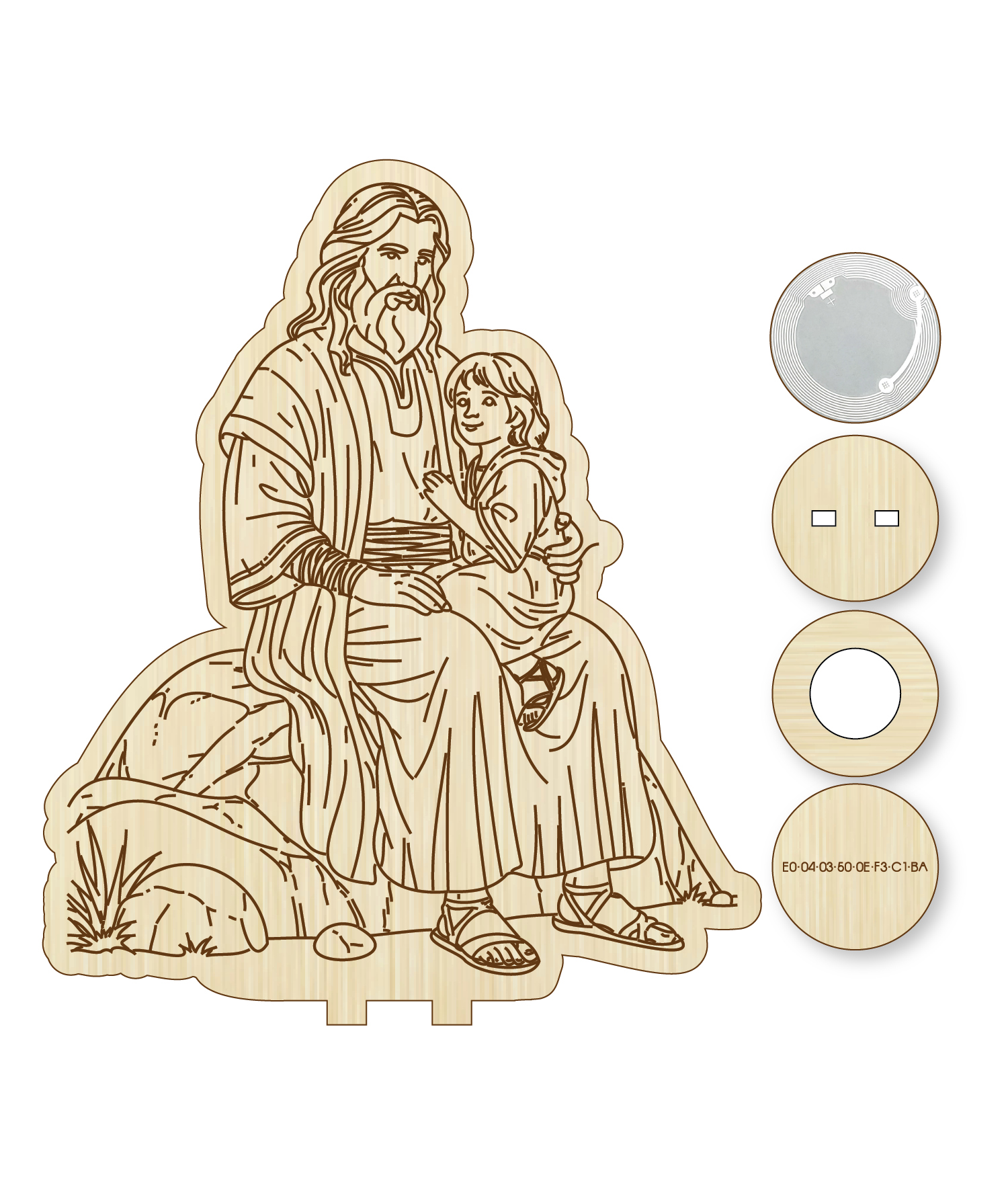 Blank and unassembled, this figure of Jesus that you can paint and assemble with your child. Add your own audio to the figure such as favorite Bible stories, hymns, or lessons, and make it a unique and personal creation for your family. Woodies require disassembly of your music box, and music loaded directly onto its internal SD card. To learn how to do this, click "get started" in the menu bar.